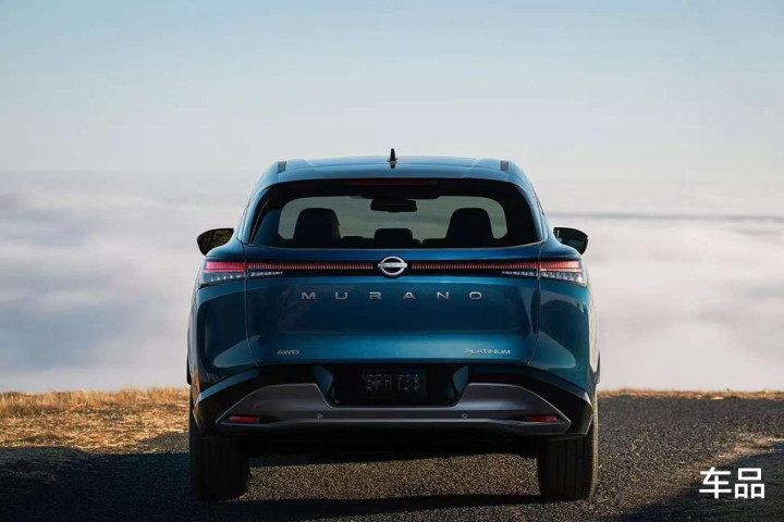 新一代日产楼兰的车身侧面,从下方的实拍图来看,得益于流畅车顶的运用,同时针对车顶进行了黑化处理,这种双拼的配色,整体显得层次感分明,并且也让其拥有了轿跑SUV的神韵。此外,镀铬饰条贯穿侧面柱体上方,也进一步提升了精致美感。值得称赞的地方在于,新一代日产楼兰在耍酷的同时,也没有忘记实用性,并没有采用隐藏式门把手,而是继续配备了传统门把手。车尾部分,新一代日产楼兰也是将前卫个性进行到底,具体来看,上窄下宽的整体造型,塑造出沉稳扎实的形象。并且贯穿式尾灯组合也没有缺席,再加上车顶扰流板以及下包围银色保险杠的点缀,也使得新一代日产楼兰的尾部达到了运动和硬派两者兼顾的水平。